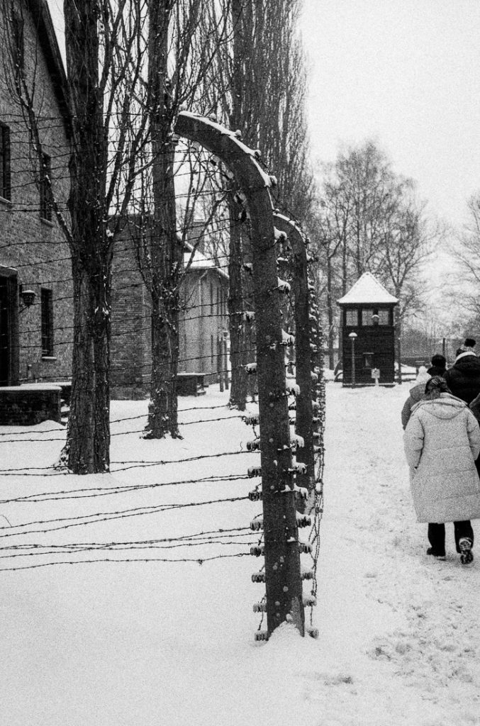 Vintage Camera #038 – Zorki 4 Posted on 31st January 202631st January 2026 by Laurence Zorki 4 The Zorki 4 is another Soviet-era camera, manufactured in quite large numbers between 1956 and 1973. It was manufactured by Krasnogorsk Mechanical Works (Красногорский механический завод). This camera is very similar to the Zorki 3S but with the addition of a self timer. I spent several days in Poland recently and had to think carefully about my choice of cameras. One of my go-to cameras for a holiday is my Canon EOS 1N but that was out of the question this time as there was already a film loaded. When I’m going through an airport it’s always much easier getting manual checks on films if they’re not in a camera. I should write a post with tips and my experience, because I see the questions over again on Facebook groups. I even ask similar questions myself occasionally if it’s not specifically airport security. There are ways to make it smooth and streamlined. My best experience hands down is always at Gatwick airport. It’s efficient, all the staff seem to know how to handle film and on this trip they even spotted it on the side while I was getting everything else ready for security scanning and said they’ll sort it, before I even asked. Top marks there. My next camera of choice is my Bronica ETRS, it’s a lovely camera to use and has a great feel. After my experience in Finland where the shutter froze after I’d been out in the cold for a few hours, I was reluctant to carry the extra weight knowing the temperature would be down to -10°C on this trip (it went down a lot lower). Nevertheless I took it anyway and I’m glad I did. By the last day, it had warmed up to near-zero and was just warm enough for the camera to work. For this trip though, the primary camera was the Zorki. It felt somewhat fitting to choose one of the old Soviet era cameras to take with me given the cold conditions. I swapped the lens having discovered a Jupiter lens on a non-working camera so I decided to pair that with the Zorki. This turned out to be a great choice. Unfortunately, the subject today is rather sombre. I got on the train and took a trip to Auschwitz in an intense blizzard to do a prebooked guided tour of the two camps, Auschwitz and Birkenau. Read up on the Holocaust before you go. Even if you know what happened there, being there, hearing the stories and seeing the evidence really is a harrowing experience. But as the tour guide said, it must never be forgotten and the memories should be shared. So here I am now. It’s been several years since I used black and white film, but it felt fitting to take one with me for this trip. I was already part way through a roll of Kodak Gold when I arrived so some of these are in colour. After the last few images on that roll I loaded my roll or Ilford HP5. I’m very satisfied with the photographic results of this day out. Photography is about telling a story, and I find that a lot of my photos are more like holiday snaps, whereas this feels to me like a strong set of images. The weight of the location’s history definitely influenced this; my storytelling in photography isn’t good enough on its own. Moving on to the camera itself, i did find it a little bit fiddly. Focusing was easy, that Jupiter lens has goregeously smooth focus and aperture settings and this was easy even with gloves on. Changing the shutter speed setting was more tricky; on my example the selection marker on the shutter speed dial is slightly out of line, and having to lift it up to change settings and lock it in place is tricky with thick gloves. The rangefinder patch in the middle of the viewfinder has decent visibility and it’s easy to see when it’s in focus. When looking through the viewfinder, the composition you see varies significantly depending on the camera position in front of your eye. That will take some getting used to but I guess once you’ve used it for a few rolls you’ll get to know what it’s like. the film advance mechanism works on mine, but I did have quite a few bits of blank space on the negatives where I couldn’t get it to engage with the shutter mechanism and it wound on a bit without recocking the shutter. The positive side is that at you can tell when it’s happened, and it’s after you’ve taken a photo, so you’re not losing pictures you’ve taken without knowing. The below is a fairly uncurated gallery but I feel there’s some merit in sharing all of them. Especially given the significance of every sight there. As mentioned, the colour images are on Kodak Gold 200, the black and white are on Ilford HP5 Plus. Negative Lab Pro v3.0.2 | Color Model: Frontier | Pre-Sat: 4 | Tone Profile: Linear | WB: Auto-Neutral | LUT: Natural Negative Lab Pro v3.0.2 | Color Model: Frontier | Pre-Sat: 4 | Tone Profile: LAB – Standard | WB: Auto-Neutral | LUT: Frontier Negative Lab Pro v3.0.2 | Color Model: Frontier | Pre-Sat: 4 | Tone Profile: Linear | WB: Auto-Neutral | LUT: Natural Negative Lab Pro v3.0.2 | Color Model: Frontier | Pre-Sat: 4 | Tone Profile: LAB – Standard | WB: Auto-Neutral | LUT: Frontier Negative Lab Pro v3.0.2 | Color Model: B+W | Pre-Sat: 4 | Tone Profile: LAB – Standard | WB: None | LUT: Frontier Negative Lab Pro v3.0.2 | Color Model: B+W | Pre-Sat: 4 | Tone Profile: LAB – Standard | WB: None | LUT: Frontier Negative Lab Pro v3.0.2 | Color Model: B+W | Pre-Sat: 4 | Tone Profile: Linear + Gamma | LUT: Frontier Negative Lab Pro v3.0.2 | Color Model: B+W | Pre-Sat: 4 | Tone Profile: LAB – Standard | WB: None | LUT: Frontier Negative Lab Pro v3.0.2 | Color Model: B+W | Pre-Sat: 4 | Tone Profile: Linear + Gamma | WB: None | LUT: Frontier Negative Lab Pro v3.0.2 | Color Model: B+W | Pre-Sat: 4 | Tone Profile: LAB – Standard | WB: None | LUT: Frontier Negative Lab Pro v3.0.2 | Color Model: B+W | Pre-Sat: 4 | Tone Profile: LAB – Standard | WB: None | LUT: Frontier Negative Lab Pro v3.0.2 | Color